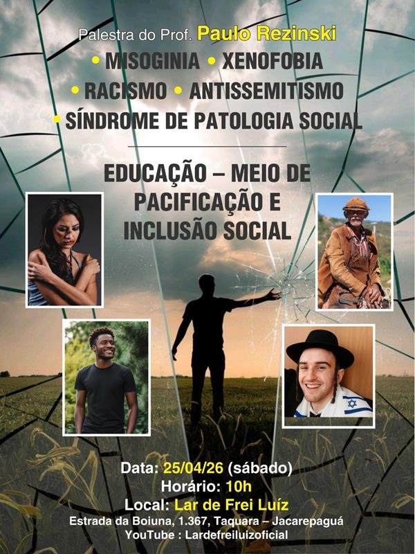 Essa é a base da palestra que o médico psiquiatra Dr. Paulo Rezinski apresenta neste sábado, dia 25 de abril, às 10h, aberta ao público no Lar de Frei Luiz. Enquanto a sociedade assiste hoje a diversas manifestações de ódio e preconceito, noticiadas pela imprensa, difundidas nas redes sociais e presenciadas ao vivo, o médico alerta sobre a necessidade da Educação como um instrumento de conscientização e superação desse cenário.